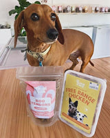 "Your raw dog food has been amazing for my pup. She’s been on beef now for 3 days and her movements have been much healthier and her bad breath has gone away. She had no troubles at all adjusting and she loves it so much she spends 10 minutes after she’s finished her dinner still licking the bowl to get every last drop. Thank you so much for your help in store we are so grateful to have found such a great solution for our groodle Codi ☺️🤩”