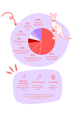 Each meal contains a balanced mix of kangaroo meat, organs along with carefully selected vegetables, oils, and natural superfoods to create a complete, biologically appropriate raw diet. Kangaroo is not only hypoallergenic but also low in saturated fats, making it a smart choice for dogs needing weight management or with inflammation-related conditions. Our small-batch preparation preserves the natural goodness of every ingredient for a clean, wholesome meal.