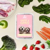 Duck & Turkey are both novel proteins making it great for sensitive skin. Made from fresh, human-grade whole Duck and Turkey, this formula includes meaty cuts, nutrient-dense organs like liver and heart, and soft ground bones to naturally supply calcium and promote strong bones and teeth.